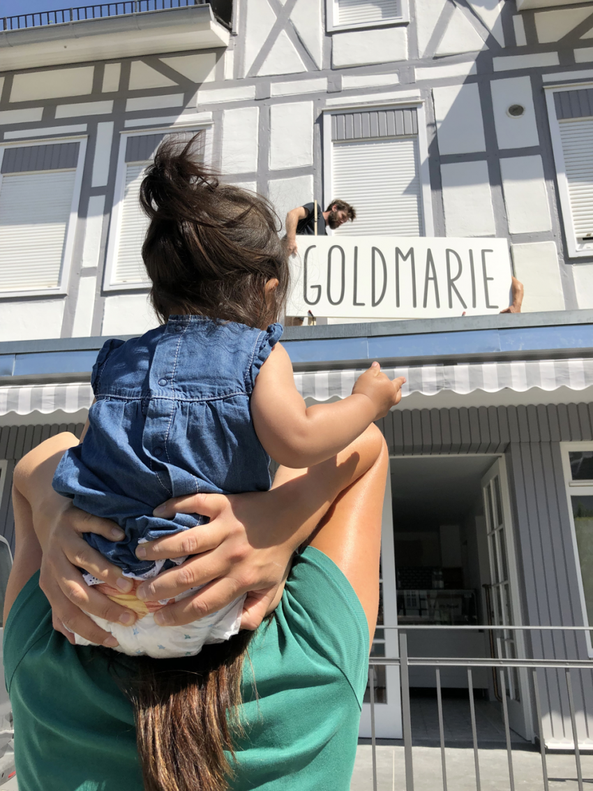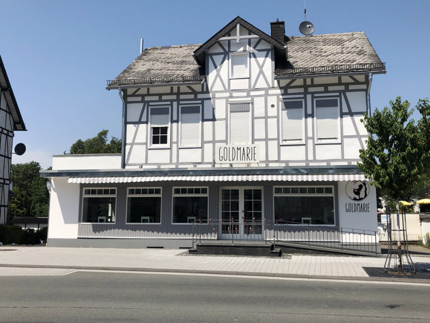 Fortan wurde auch in den alten Café-Stuben eifrig gewerkelt. Des Tischlers Liebste aber gebar in der Zeit eine liebreizende Tochter. Die Eltern waren überglücklich und nannten ihre Tochter Marie. So kam es, dass das Eis-Café den Namen „Goldmarie“ tragen sollte. Als gute Fee wachte die Holde nunmehr über die kleine und die große (Gold)Marie und achtete darauf, dass beide wohl gedeihen und wachsen würden. Den Gästen sollte es an nichts fehlen, dafür würde sie von nun an sorgen. Doch was sollte in der „Goldmarie“ feil geboten werden? Dies war recht leicht.