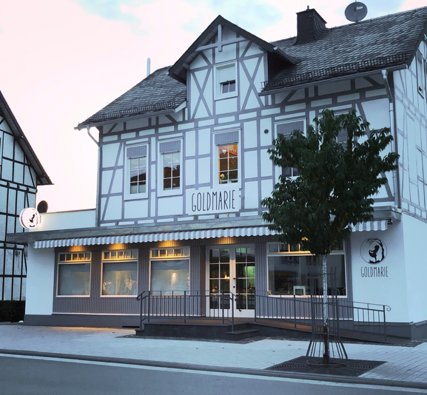 Fortan wurde auch in den alten Café-Stuben eifrig gewerkelt. Des Tischlers Liebste aber gebar in der Zeit eine liebreizende Tochter. Die Eltern waren überglücklich und nannten ihre Tochter Marie. So kam es, dass das Eis-Café den Namen „Goldmarie“ tragen sollte. Als gute Fee wachte die Holde nunmehr über die kleine und die große (Gold)Marie und achtete darauf, dass beide wohl gedeihen und wachsen würden. Den Gästen sollte es an nichts fehlen, dafür würde sie von nun an sorgen. Doch was sollte in der „Goldmarie“ feil geboten werden? Dies war recht leicht.